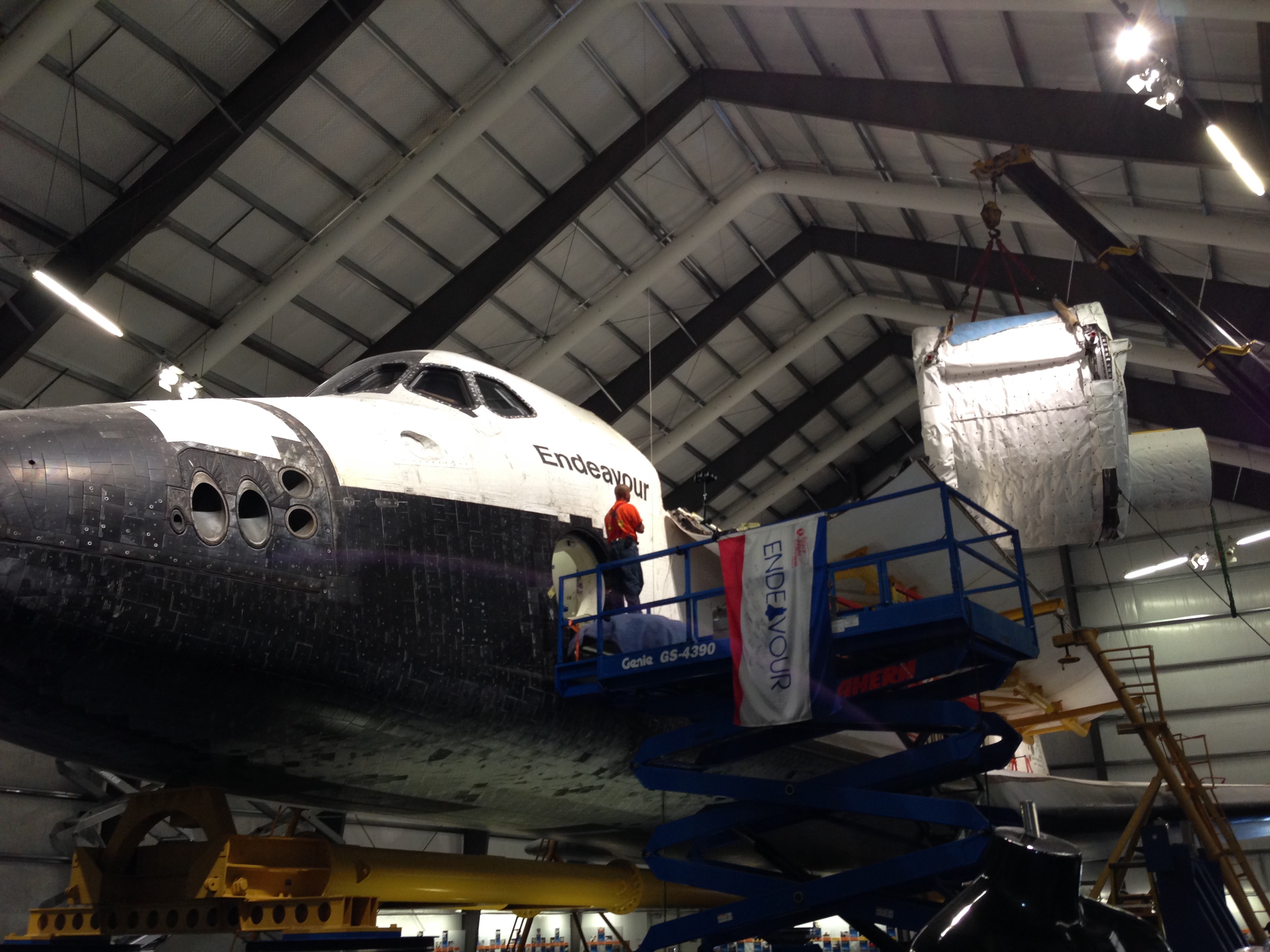 Upon entering the Samuel Oschin Pavilion, it was striking to see space shuttle Endeavour – a now familiar fixture at the Center – with its payload bay doors open.